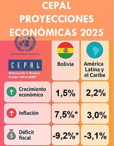 El más reciente Estudio Económico de América Latina y el Caribe de la CEPAL trae un diagnóstico que deja a Bolivia muy mal parada frente al resto de la región. Según el organismo de la ONU, nuestro país tendrá en 2025 el crecimiento más bajo de Sudamérica con apenas 1,5%, muy por debajo del promedio regional (2,2%).