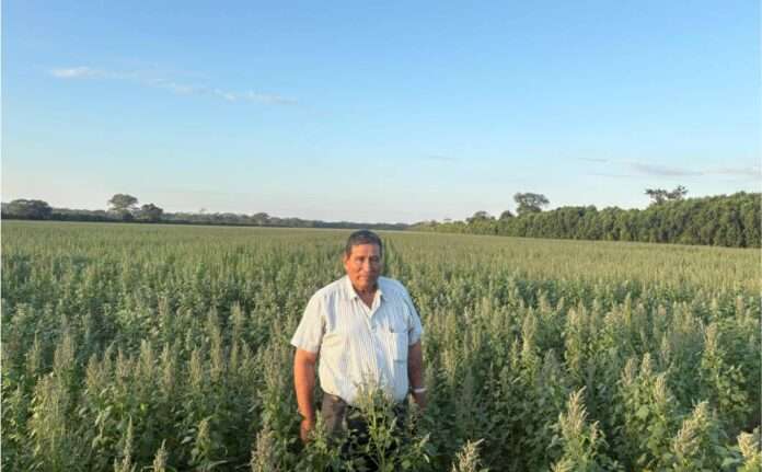 El agroproductor Edmundo Aspetty en medio de sus campos de quinua tropicalizada, en Santa Cruz.