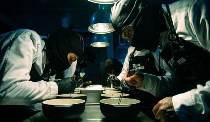 “En noviembre de 2014 nació la idea”, recuerda Marco. “Quería una cocina libre, una forma alternativa de expresar todo lo que la gastronomía puede decir, más allá de un restaurante”. Así comenzó Sabor Clandestino, con cenas ocultas, intervenciones callejeras, menús secretos y con un pasamontañas como símbolo.