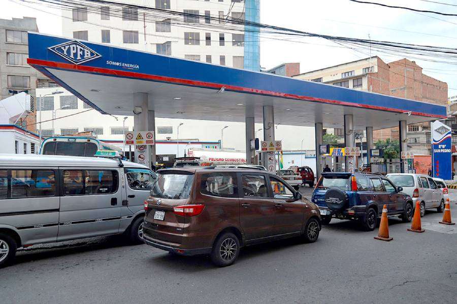 Vehículos cargan combustible en un surtidor de La Paz. (Foto: Jornada)